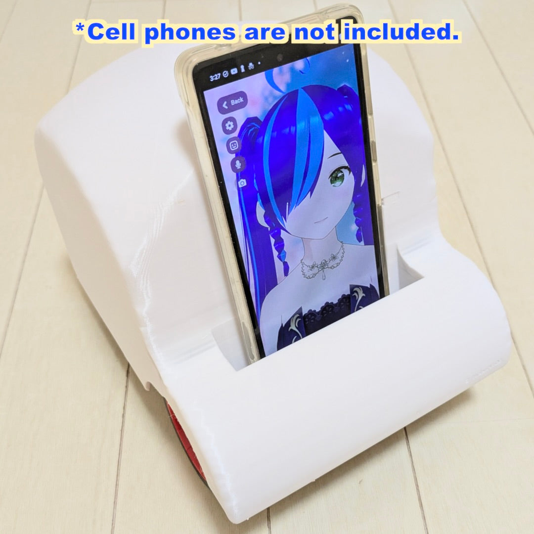 あなたのスマホがキャラAIロボットに変身!無料アプリ「RobotVRM」を使って、あなたのスマホをAIロボットに変身させるロボットカーです。キャラクターのAIがロボットカーを操作し、動かします。